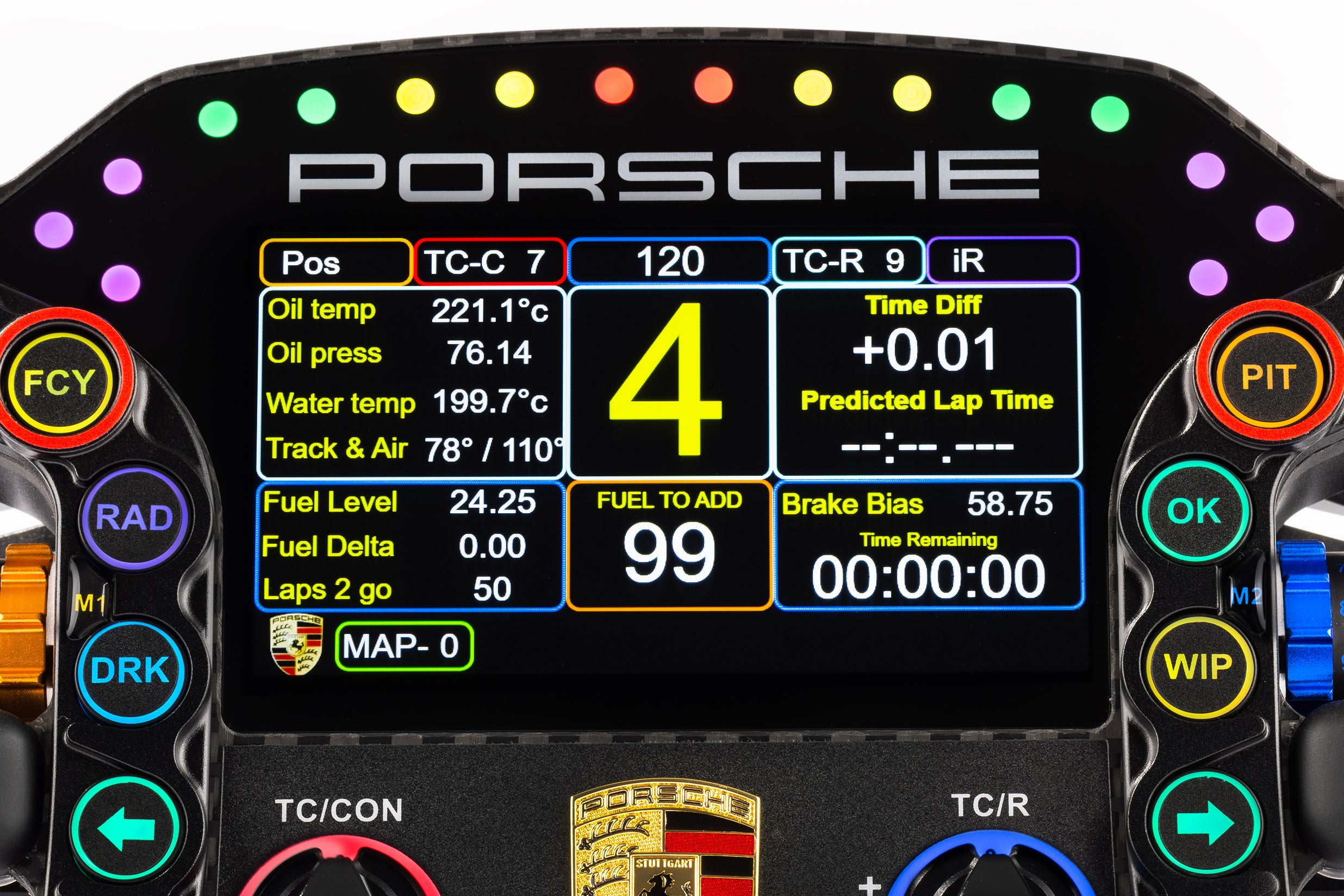 The pinnacle of sim racing wheels is here! The officially licensed Porsche 911 RSR Sim Racing Steering Wheel is utilizing the highest quality parts available in a sim racing steering wheel. When every thousandth of a second counts, it is paramount to be able to retrieve data in the blink of an eye. By exploiting the use of our 80 telemetry controllable RGB LEDs, our first in the industry technology will constantly provide the data you need, while keeping your eyes on the track!