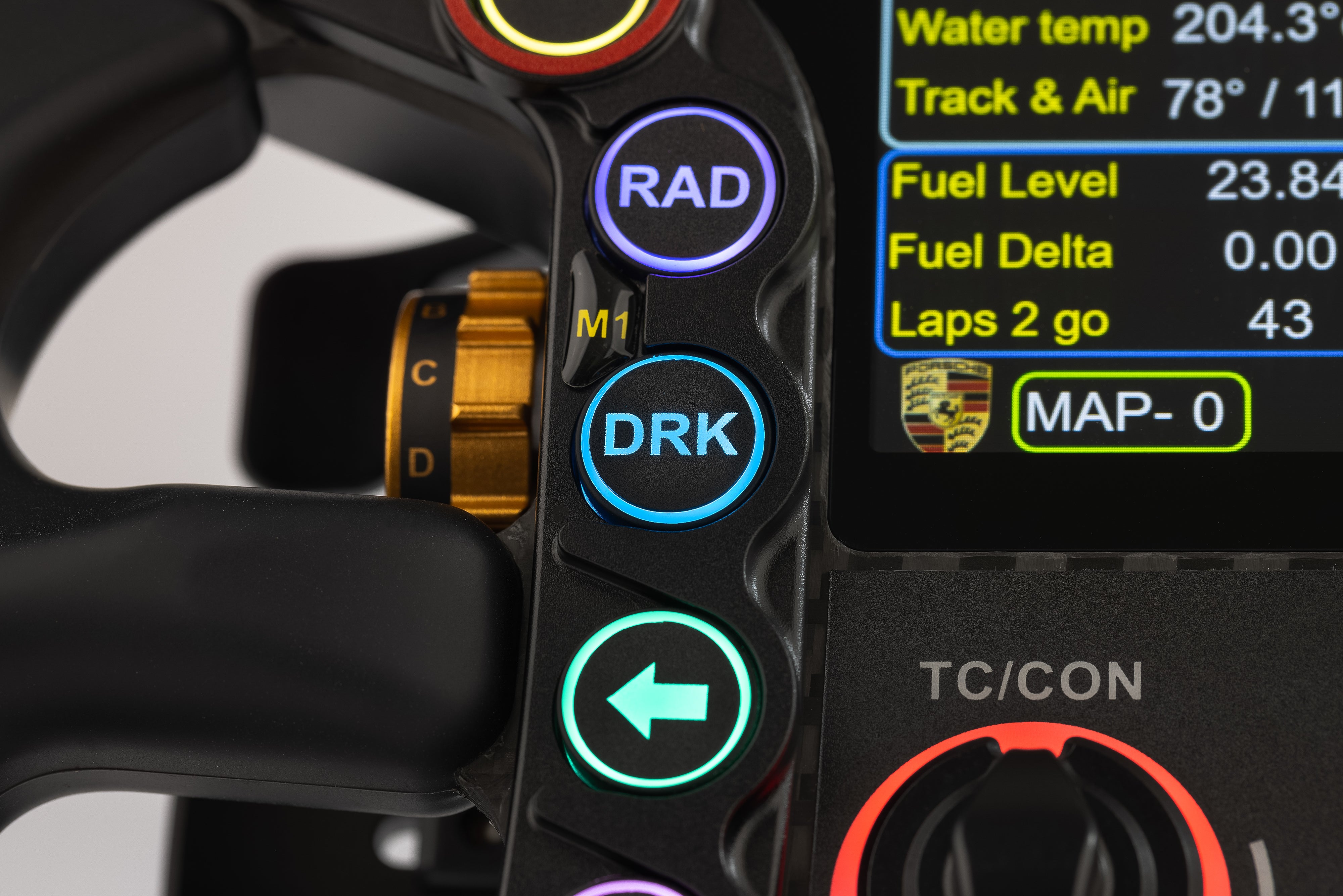 Utilizing our first-in-the-industry technology, customize your wheel with one of 16.7M colors. Each encoder and button has 4 LEDs that are individually controlled. Set your desired RGB effect such as a multi-color spin, fade or flash to provide you with visual confirmation for settings such as flags or pit-limiter. This enables every customer to set their own specific individual color preferences.